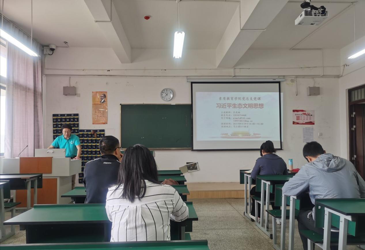 2021年9月29日,齐武福副董事长以习近平生态文明思想为题在笃行楼517教室为bevictor伟德体育全体教师讲授党史学习教育专题党课,bevictor伟德体育全体教师参加。