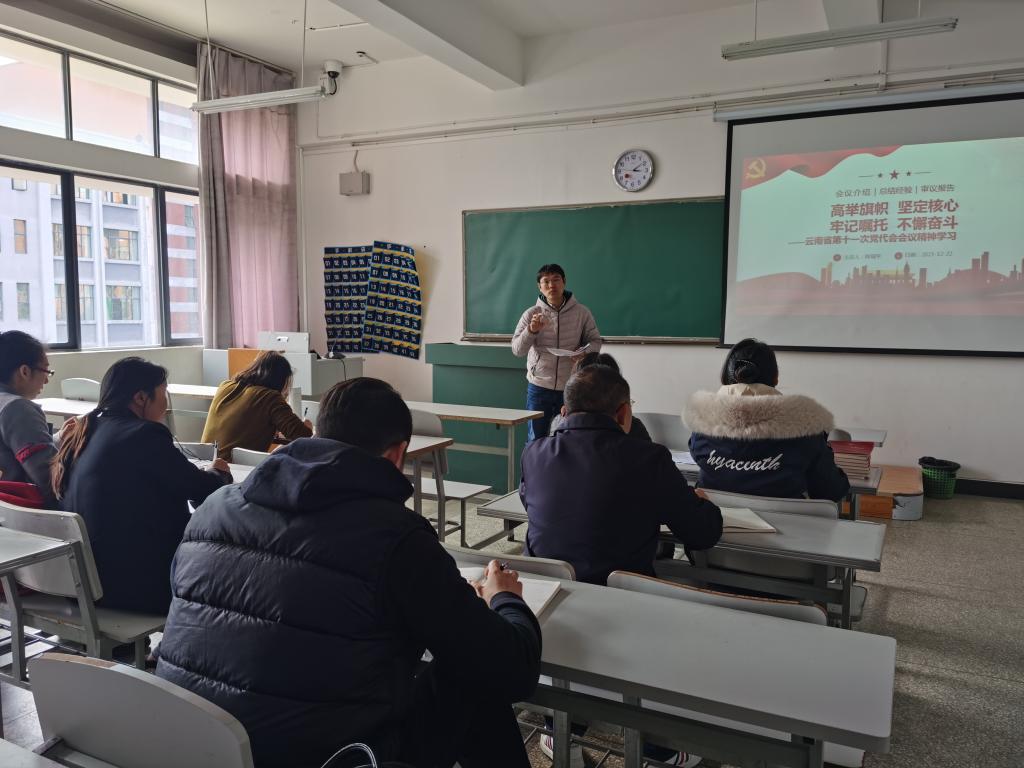 202112221500在笃行楼515教室,bevictor伟德体育召开全体党员大会,与马克思主义公司开展党支部共建活动,由马克思主义公司第二党支部陈瑞平同志分享学习“云南省第十一次党代会”精神。