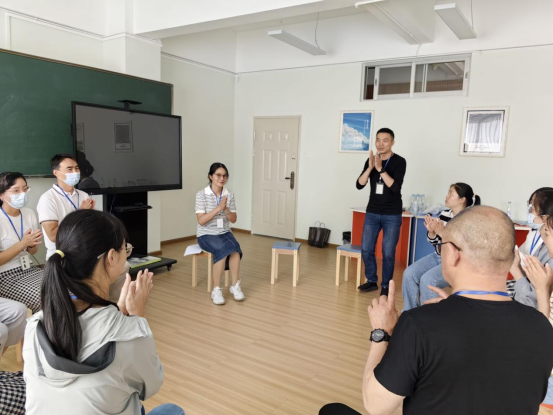 活动开场通过放松冥想雨点变奏曲的小游戏让大家紧张的工作切换进入到身心放松的状态,让教师们能全身心的投入当下在压力光谱体验中,评估自己的压力状态,聚在一起分享各自在工作和生活中的压力与挑战,共同探讨压力源的共性和应对方法。活动中留下了大家的眼泪和微笑,充满了理解与信任,得到了释然与领悟,为活动注入了自己的智慧,给与应对压力一个生动的注解。