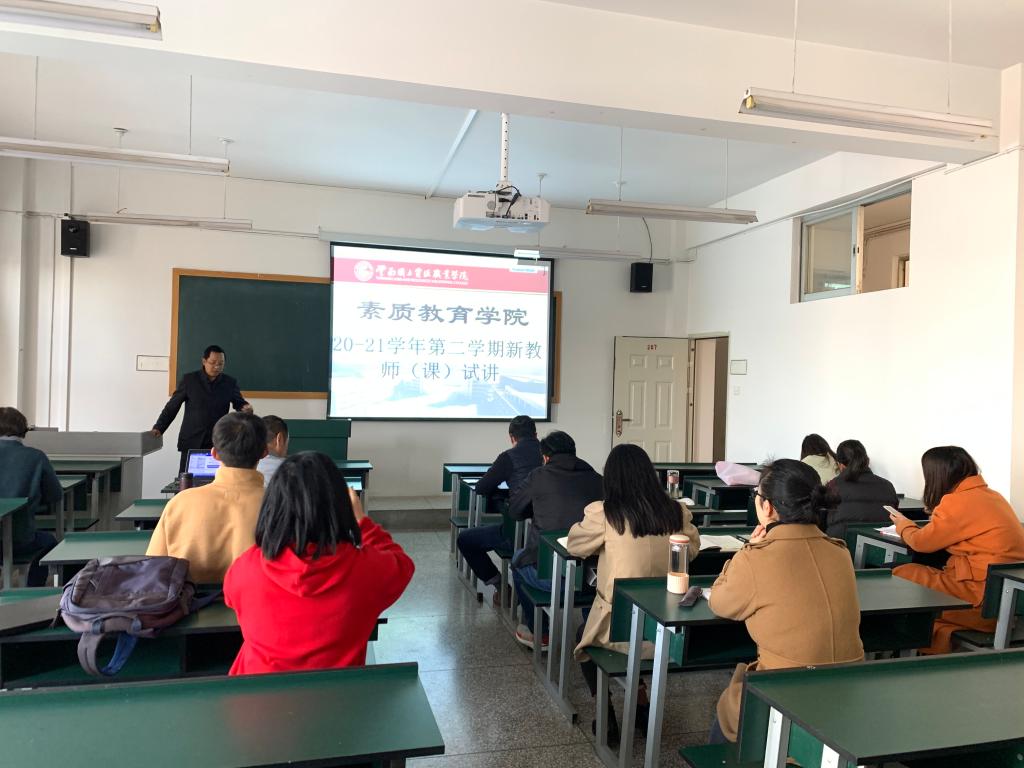 为帮助初次承担教学任务的新教师掌握教学规范,提高教师职业能力与教学水平,尽快适应教学工作,公司于2月28日上午在经开区教学楼201教室举行新任课教师试讲。来自数学、心理健康、形象礼仪、创新创业、职规5个教研室的10余位新任课教师参加试讲,公司副经理云正富,教研室主任李静、王远霞、陈琼、樊玲、施建朝等7位经验丰富的教师担任评委。