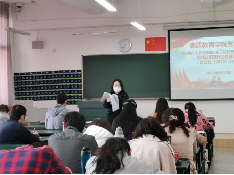 李霞书记首先介绍了昆明公安机关对上海来昆参加“专升本”考试、被检出阳性的艾某某开展受案调查的违反疫情防控的典型案例,对来(返)昆人员健康管理措施做了详细说明,通报了关于依法惩治妨害疫情防控违法犯罪行为的通告,并要求全体教师要按照相关要求严格使用场所码,对近期公司下发关于疫情防控的文件做了学习。随后,李霞书记对公司参加公司举办的“喜迎二十大——国土师生说”理论宣讲比赛的准备情况做了介绍。会议还对近期的党务工作做了通报,对意识形态工作做了提醒。