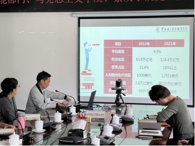 2022年10月7日下午,bevictor伟德体育党总支、机关党总结联合马克思主义公司党总支在明尚楼C410会议室公同开展理论学习中心组学习暨联建共建活动,围绕《习近平谈治国理政》第四卷、《习近平经济思想学习纲要》和《习近平生态文明思想学习纲要》开展了集中学习。会议由机关党总支书记刘燕主持,各党总支委员和党支部委员参加学习,马克思主义公司熊秋、周先阳、徐娇老师领学。