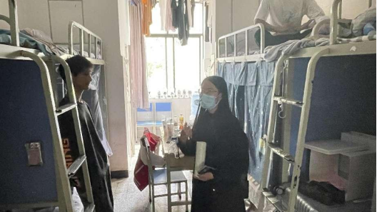 在走访过程中,两位老师给予员工们亲切问候,与员工就近期以来的学习生活状态进行了交流互动,了解员工整体心理情况,并提供心理疏导,安抚同学们焦虑的情绪。同时希望大家在疫情防控期间调整好学习和生活状态,合理安排作息时间并保持积极向上的精神面貌。
