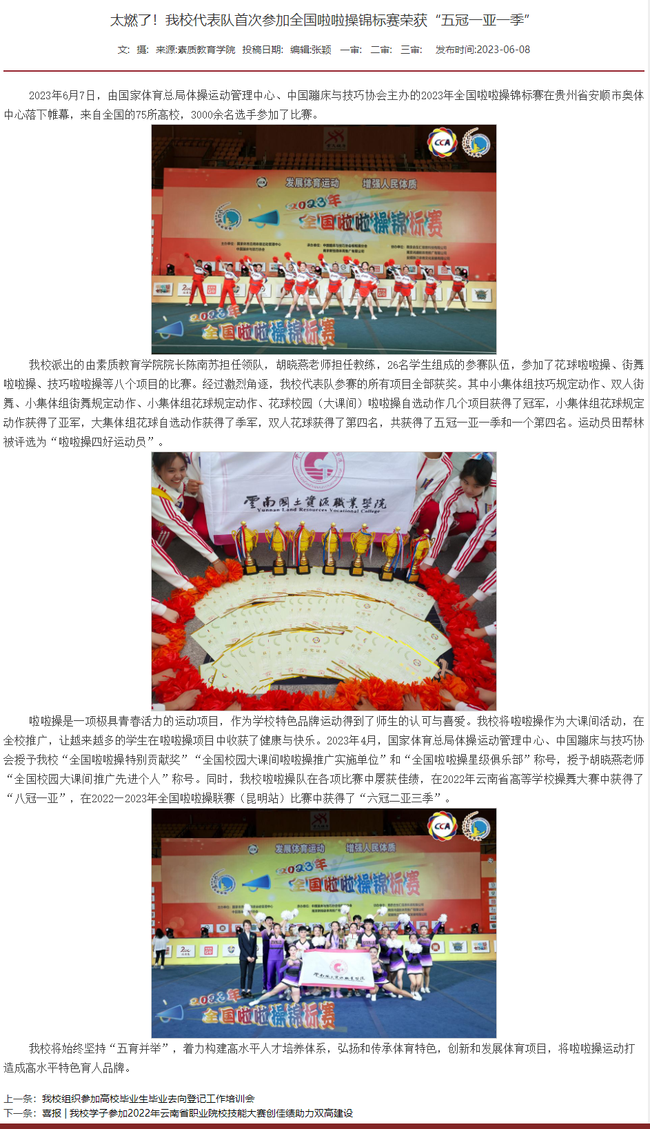 公司代表队首次参加全国啦啦操锦标赛荣获“五冠一亚一季”