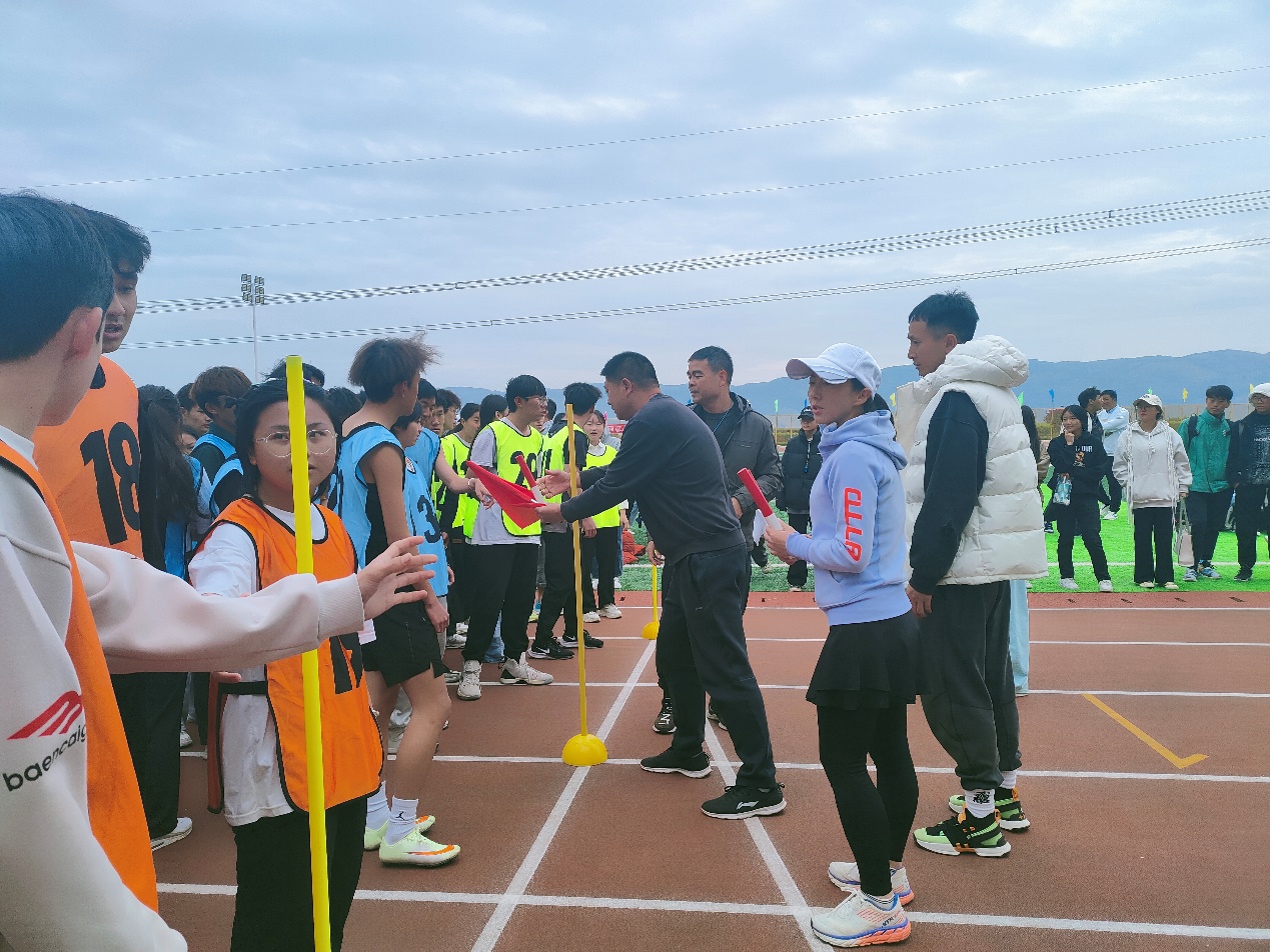 公司体美劳教研室全体老师在运动会中担认各项比赛裁判,三天的执裁工作发扬了体育人吃苦耐劳的精神,不畏寒冷,认真、细致的完成每一项执裁