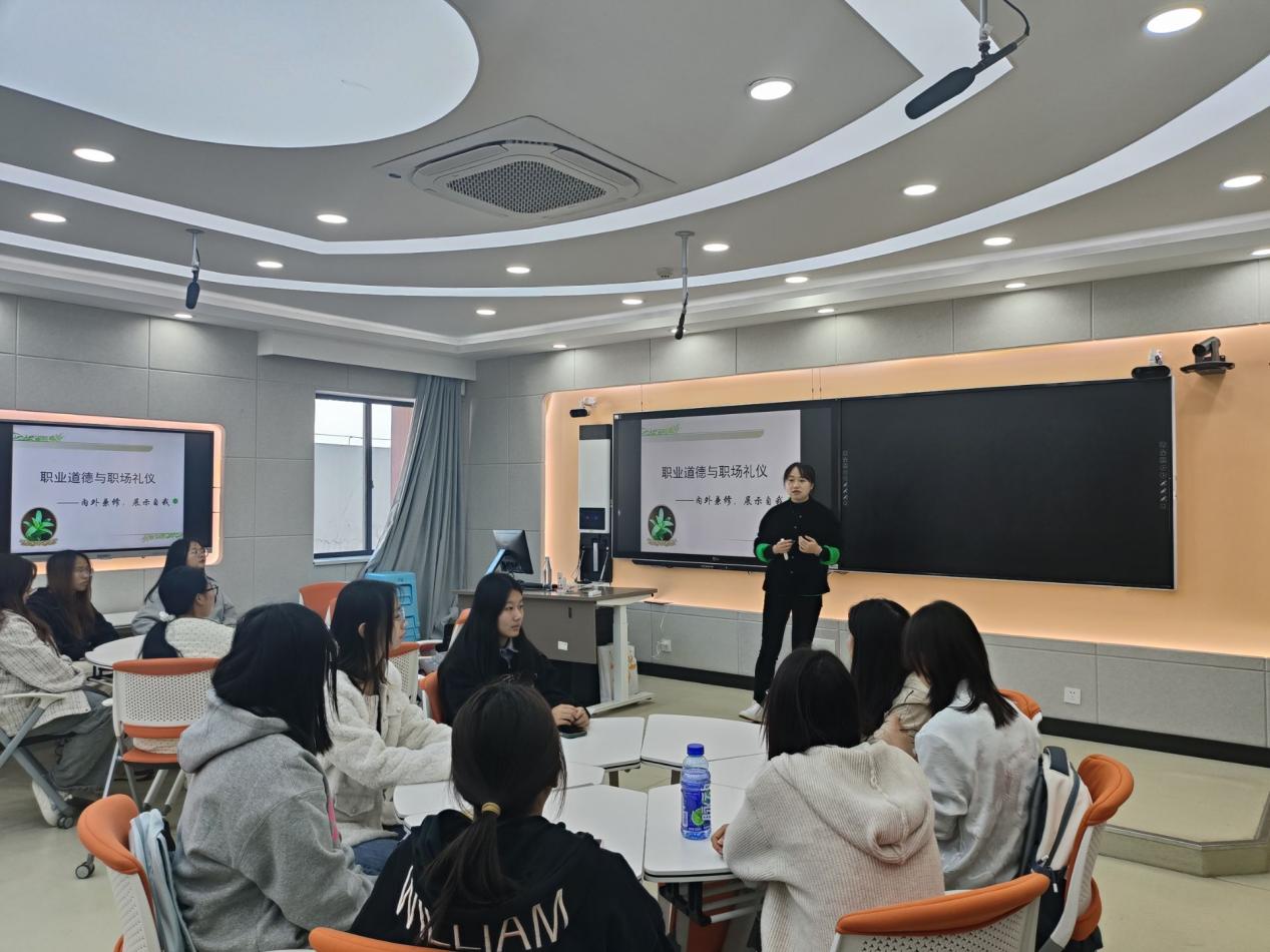 12月11日下午,bevictor伟德体育邓月婷平老师在阳宗海校区崇实楼505教室开展了主题为“职场道德和职场礼仪”的职业规划咨询讲座。讲座吸引了各个公司的40余名同学参加。