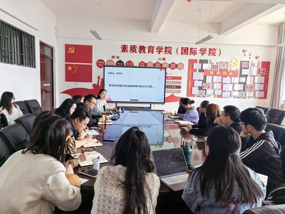 在教学研讨环节,教研室骨干教师李静首先就“职业环境探索”教学模块进行了系统分享。她从学情分析入手,指出当前员工在职业认知方面存在的主要问题,并详细阐述了包括学习目标、教学重难点、教学理念与方法以及预期教学效果在内的完整教学设计方案。与会教师积极参与讨论,结合各自教学实践,分享了在不同专业背景下实施该教学模块的具体做法和心得体会。