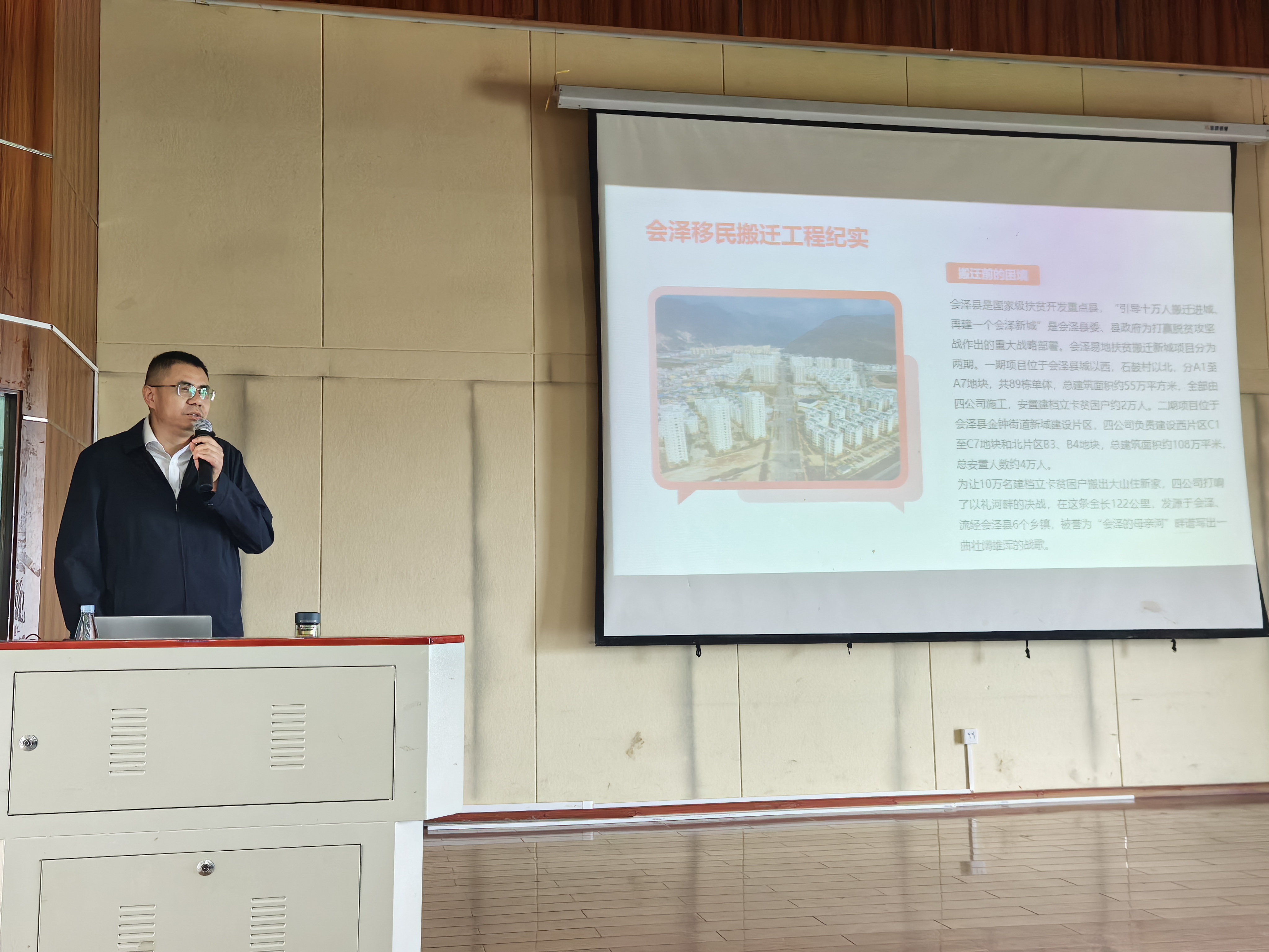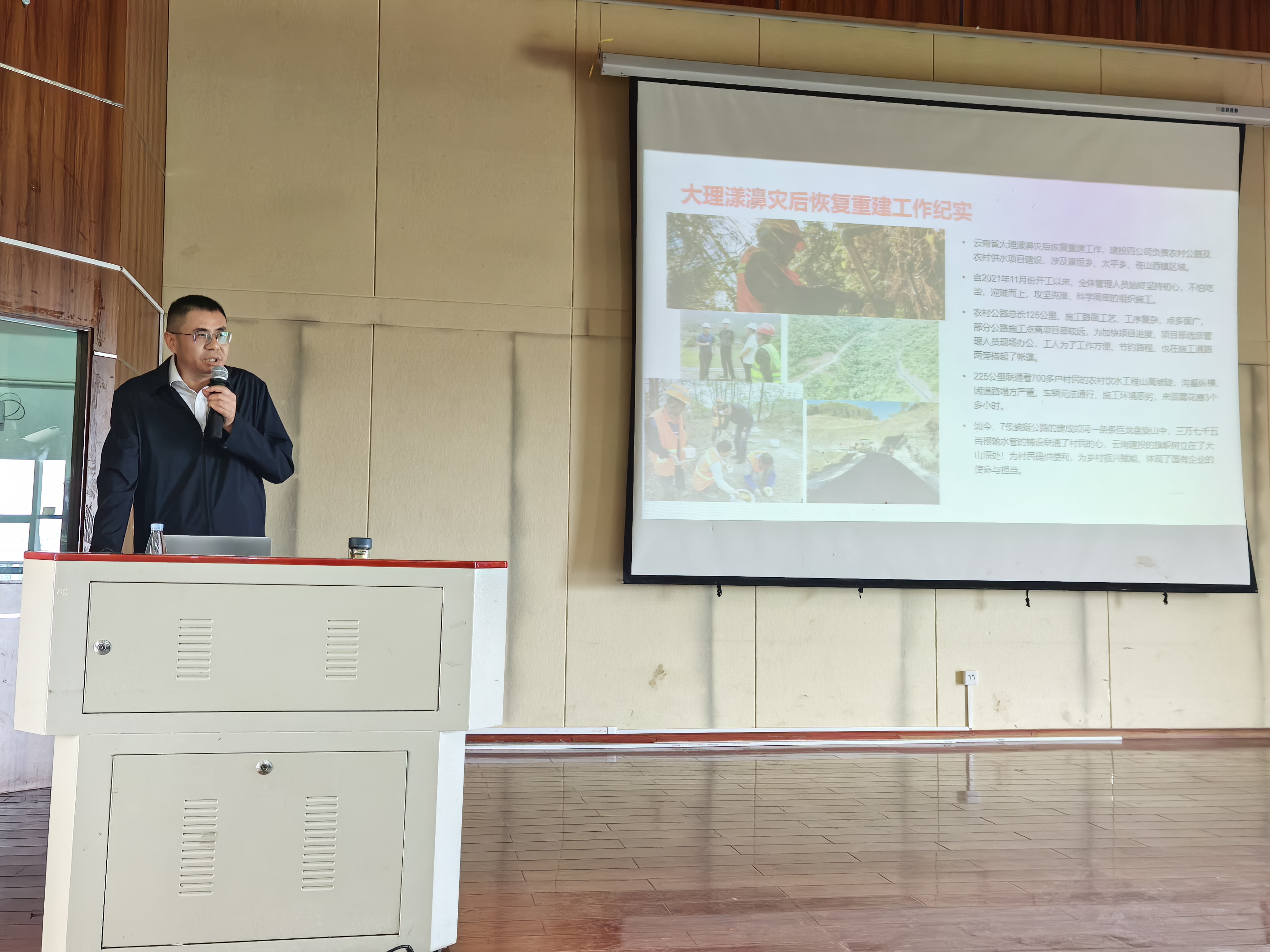讲座中,孙小波以自身参与的各级重特大项目为线索,生动讲述了一线建设者的奋斗故事。从会泽移民搬迁工程的民生重任,到大理漾濞灾后恢复重建的争分夺秒,再到曲靖医学高等专科公司马龙校区建设的精益求精,他以鲜活案例展现了国有企业践行劳动精神的实践路径,并分享了个人在重大项目历练中的成长感悟。