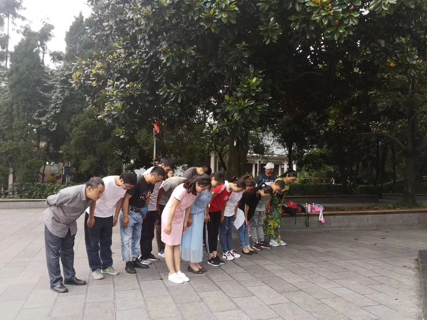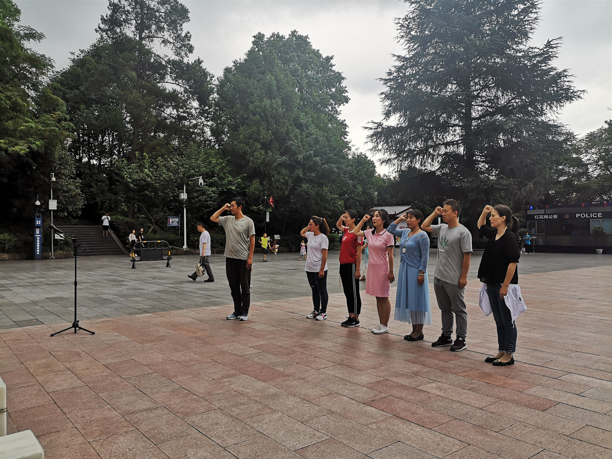 在凤凰山红军烈士陵园,全体教师们拾级而上,站在由邓小平同志题词的“红军烈士永垂不朽”纪念碑鞠躬默哀,表达深深地哀思与敬意。