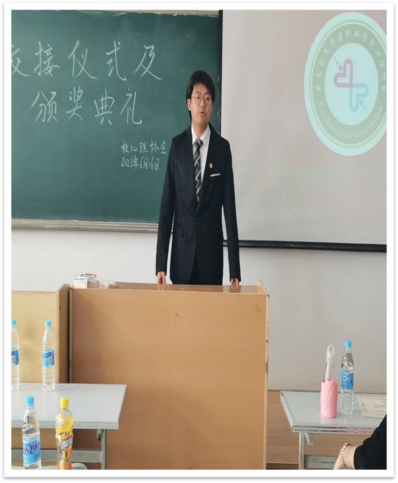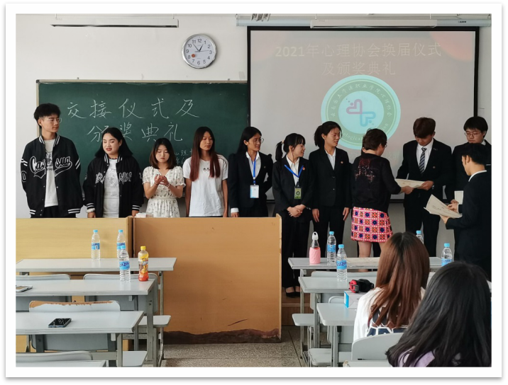 在过去的一年里,协会在各位负责人的带领之下,校心理协会迈向了更加美好的发展。在一年之中各部负责人在带领协会发展的同时,也培养着新一届的负责人,将协会的优秀管理方法继续传承下去,为协会未来更好的发展提供新鲜的活力。当接力棒传到下一届负责人成员的手中时,新负责人的肩上便多了一份新的责任和义务。为了将接力棒更好的传递,同是也为对过去一年里负责人和成员的努力的肯定,心理协会于2021年6月16日星期三12:30在笃行楼303教室举行2021年心理协会换届仪式及颁奖典礼,让们一起走进这激动人心的时刻。