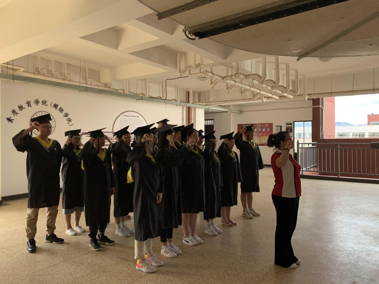 接下来组织本科生全体党员、预备党员重温入党誓词活动。面向鲜红的党旗重温入党誓词,接收一次深刻的历史性的教育。全体党员身着学士服,佩戴党员徽章,神情庄重、精神饱满,高举右拳,回顾建党历史,回望入党初心,迈进新时代,扬帆新起航。