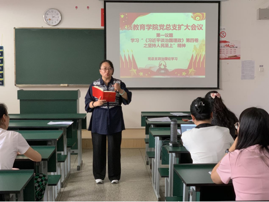 之坚持人民至上”精神。此次学习会议全体教职员工参加,由党总支书记李霞领学。