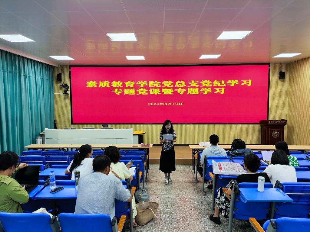 6月19日,bevictor伟德体育党总支在经开区校区教学楼110开展党纪学习教育专题党课暨专题学习。