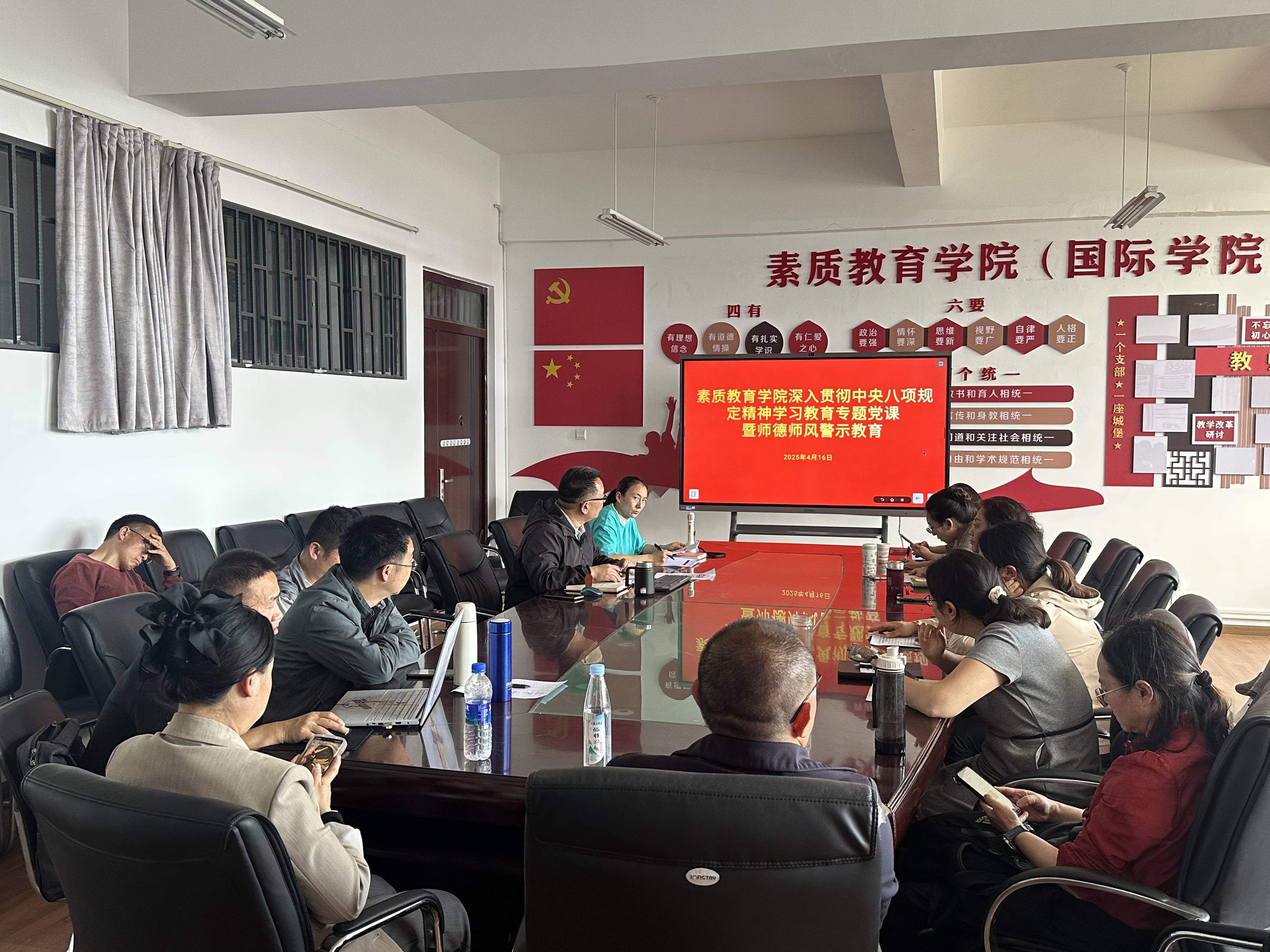 bevictor伟德体育召开深入贯彻中央八项规定精神学习教育专题党课暨师德师风警示教育会